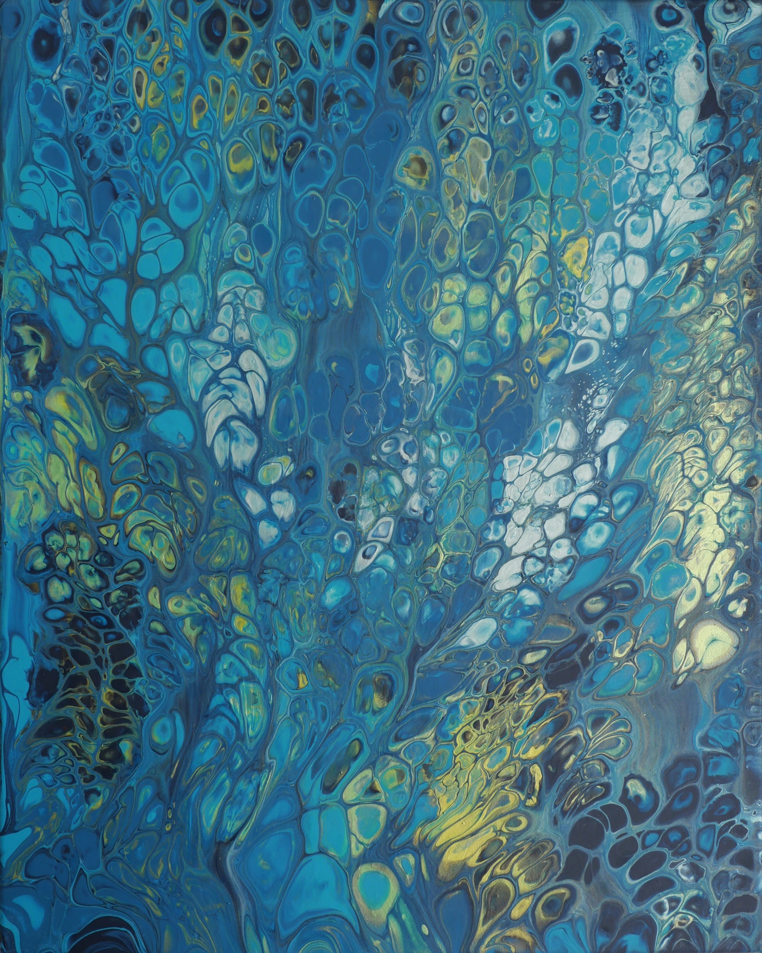 Dieses Werk ist Teil meiner künstlerischen Seelenarbeit – abstrakte Acrylmalerei im Fließtechnik-Stil (Acrylic Pouring), verbunden mit der transformierenden Kraft von Reiki und Drachenenergie.