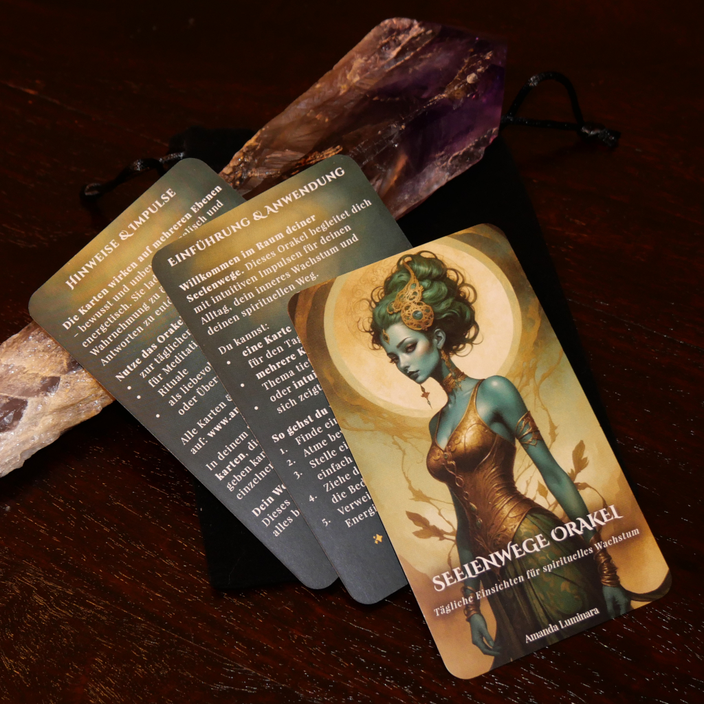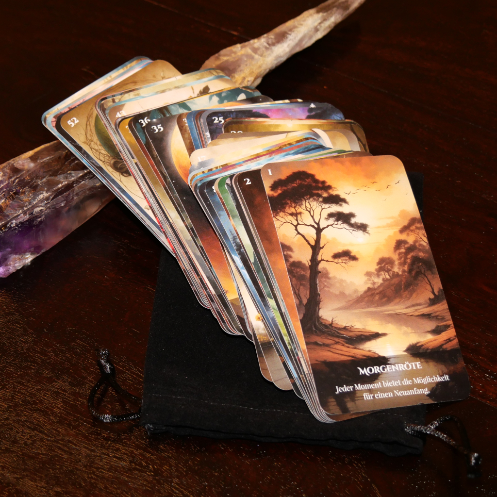 Jede Karte trägt die Energie authentischer Handarbeit und bewusster Gestaltung – geschaffen, um Menschen auf ihrem spirituellen Weg zu inspirieren und zu berühren.